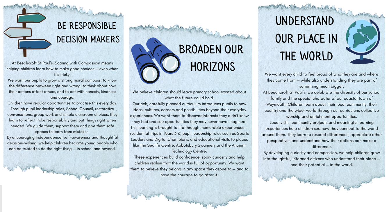 At Beechcroft St Paul’s, we believe every child and adult should thrive—personally, spiritually, and academically. Rooted in our vision, Soaring with Compassion, and inspired by St Paul’s words in Philippians, our curriculum is shaped by the Christian values of hope, respect, and wisdom.